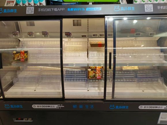 ▲ 晚上九点以后,盒马的轻食区空荡荡。图 / 受访者提供