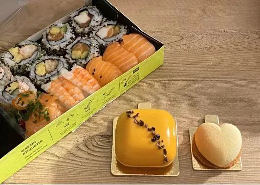 只不过,为了取这剩菜盲盒,他在晚上7点出发,在下班高峰期坐上近两个小时公交才取到。他记得当时取盲盒的场景,店里的服务员从展示柜中拿出寿司,用外卖袋子装好,递给他的时候用的是双手。