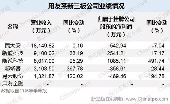 从2016年上半年经营情况看,除刚刚挂牌未披露半年报的用友金融外,另外五家用友系新三板公司的营业收入都处于增长状态。