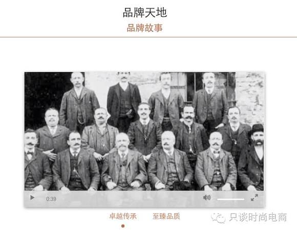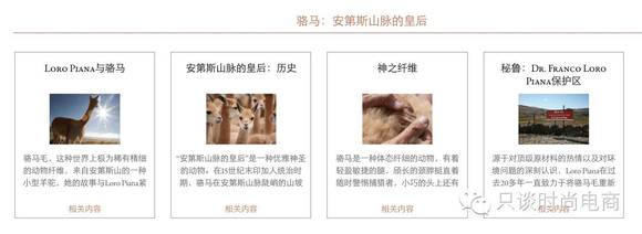 loro piana 是一个家族企业,她的中国官网专门辟出一个品牌故事栏目,用2段视频展现家族发展历程。其中强调从17世纪就开始了羊毛面料贸易;创立品牌后经历6代人的卓越传承,以家族理念‘品质、传统、天然、卓越’作为品牌精神,只用顶级面料生产。