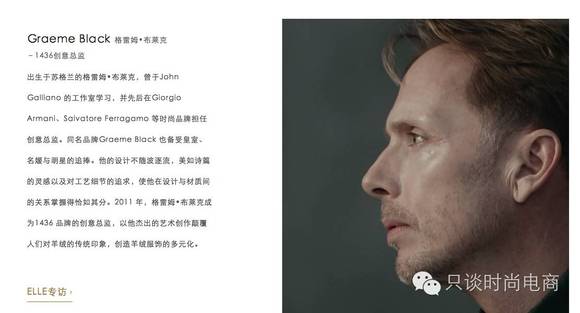 鄂尔多斯是国企品牌,集团第一代领导王林祥自然不适合作为创始人介绍。创造了1436这个品牌的,是现任集团董事长王臻。而赋予1436时尚灵魂的是创意总监格雷姆 布莱克。在1436官网上,我们没有看到王臻对这个品牌的解读;能看到对创意总监的介绍。