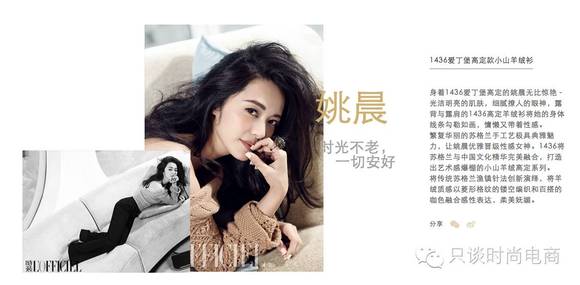 用明星穿着来增加品牌时尚度。我们可以看见拍摄的照片和视频,都是一线明星。 内容比较少,如果把近期发布会上的明星资讯也一起放进去更好。(近期1436的动作不少,在微信号里的内容还没有同步到官网)