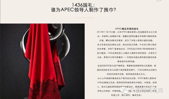 另外1436在品牌故事里,也提到是中国的APEC国礼。这很能体现品牌地位,可惜也只有这样一个例子。