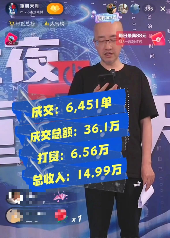 目标“翻车”——7天带货,最后的利润、打赏,加上捐款,数字是20万,离300万的目标,差距太远。