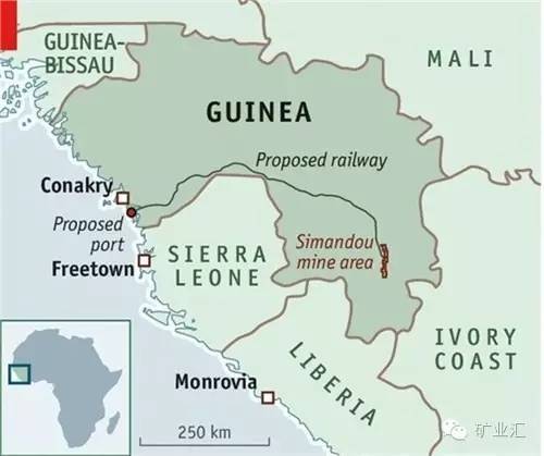 (图示红色字母为该几内亚铁矿的地理位置)