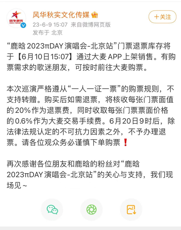 再如国内一些音乐人。如多年致力于抵制黄牛票的鹿晗,在今年“三巡”时直接官宣工作室成为演唱会的主办方,从源头上杜绝渠道票。