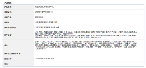 北京青年报旗下官方账号曾撰文指出任泽平在微博中贴出对比图,让人容易联想其有生发效果。但仁生泽发的相关产品按照普通化妆品备案,备案信息中仅有“清洁”和“保湿”字样,并未出现任何与“生发”“减少断发”“修护毛囊”等有关功效的描述。