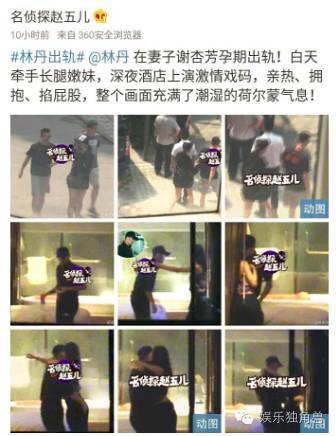 今天上午,名侦探赵五儿在微博爆料称,林丹在妻子谢杏芳孕期出轨神秘女子,两人在酒店揽腰摸臀,十分暧昧。除了有亲密动作接触,林丹更与该神秘女子打情骂俏共度春宵。