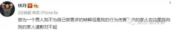 今天下午,林丹在微博发文道歉,称“做为一个男人,我不为自己做更多的辩解,但是我的行为伤害了我的家人,在这里我向我的家人道歉对不起”。