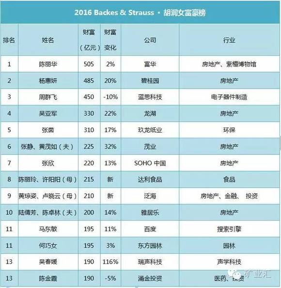 10月25日胡润研究院第十一次发布“胡润女富豪榜”前50名。