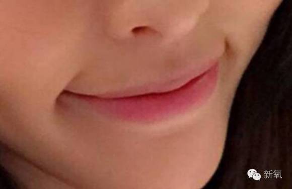 放大她的嘴唇,有一部分嘴唇用遮瑕盖住了的。