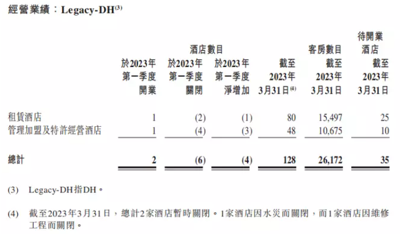 截至2023年3月31日,DH有128家在营酒店,包括80家租赁酒店以及48家管理加盟及特许经营酒店。