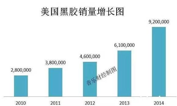 根据尼尔森的数据,美国黑胶唱片销量自2009年,以惊人速度增长。2014年,美国黑胶唱片销量920万张,2015年为1190万张。