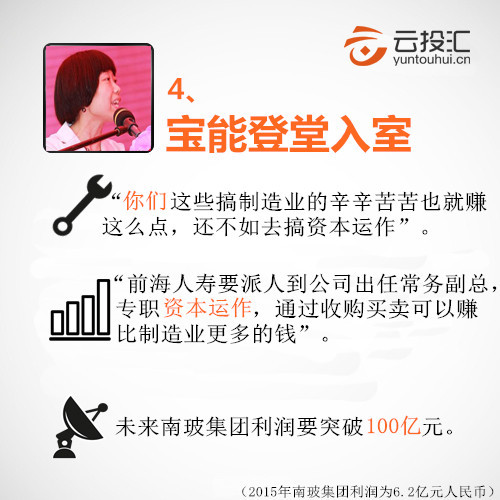 “前海人寿要派人到公司出任常务副总,专职资本运作,通过收购买卖可以赚比制造业更多的钱”。