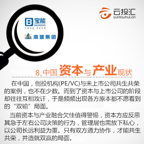 换言之,当前资本与产业融合欠佳值得警惕,资本方应反思其急于左右公司决策的行为,管理层也需放下私心,以公司长远利益为重。只有双方通力协作,才能共生共荣,并造就双赢的局面。