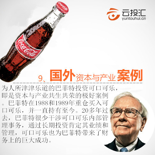 为人所津津乐道的巴菲特投资可口可乐,即是资本与产业共生共荣的极好案例。巴菲特在1988和1989年重仓买入可口可乐,并一直持有至今。20多年过去,巴菲特很少干涉可口可乐内部管理事务,通过长期投资肯定其业绩和管理,可口可乐也为巴菲特带来了财务上的巨大成功。
