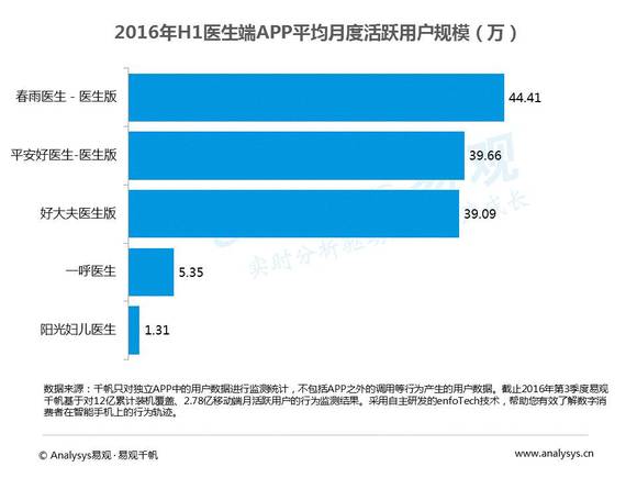 Analysy易观分析认为春雨医生版医生用户价值度高,医生服务医院和平台忠实度高。