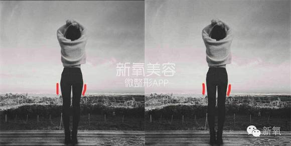 如果我们把这个突出的线条处理掉之后,你们来看看变化,之前,腿部起点远看像在臀部突出点。
