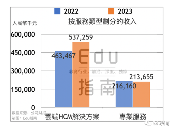 北森公司收入来自两分部,包括云端HCM解决方案、专业服务。