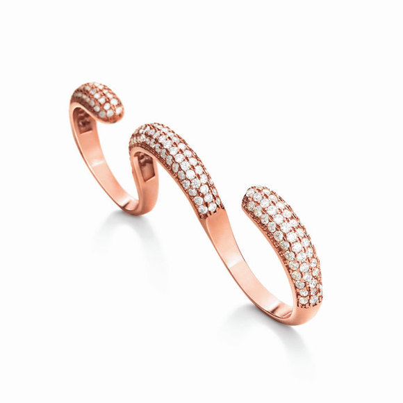 这款对戒用”Serti-Poincon”凿点金工镶嵌烘托出原石的神秘之力,浑然天成,自成一派,每颗天然原钻都未经切割、抛光和处理,独一无二,展现出源自1888年的光影大师戴比尔斯对于大自然致臻馈赠的崇敬。象征着情侣之间珍爱彼此、相互守护的紧密联系。