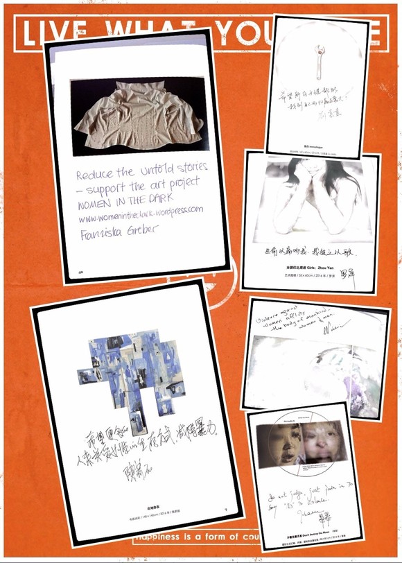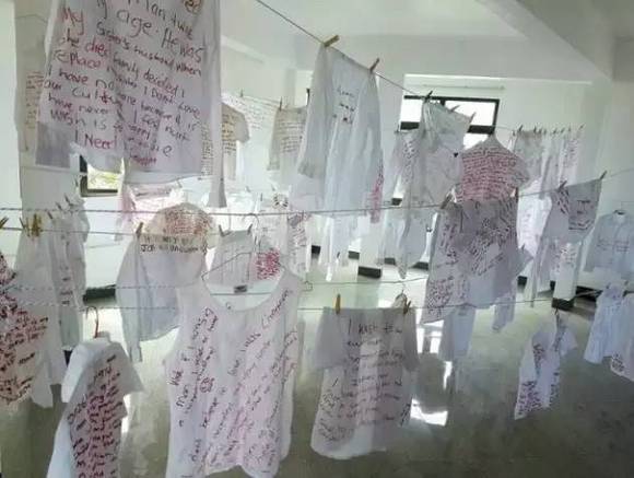 在这个项目中,她邀请受到性别暴力的女性在白色的衬衫上写下她们的声音,同时,她也宣告了《黑暗中的女性》项目在中国的启动。