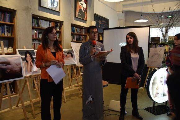 随后,策展人李丹和Cyrielle Nifle、时尚廊总经理许瀚方女士先后就做了简单的发言,他们回望了第一届“若妳安好”展览的历史,阐述了他们对于“艺术+公益”这一模式的看法,也向大家介绍了到场的参展艺术家。随即,大家共同欣赏了一段用以纪念女性解放运动先驱塔荷蕾的音乐。