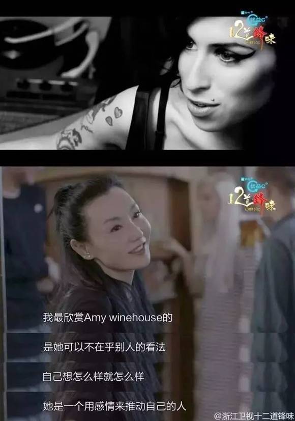 Amy Winehouse才华横溢、风华绝代,短短一生按照自己想要的方式去生活去撒野去创作,完全活出自己个性,才是张曼玉欣赏的生活态度。