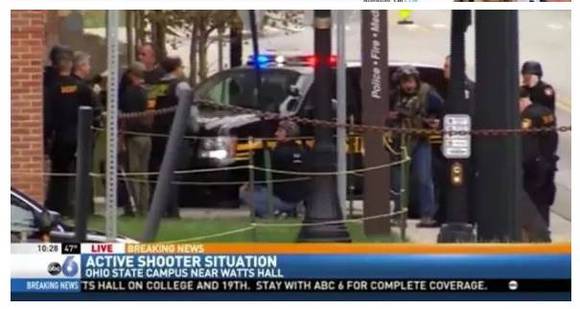 早些时候,消防局接到俄亥俄州立大学的火警报告,称有氯气泄露。消防员赶到现场前,因为火警警报,学生和教师已经离开教学楼,聚集在学校门口的小广场上。而在大约9点52分,一辆白色日系轿车撞进正在返回教学楼的人群,随后嫌疑人下车拿刀追逐砍伤周围的行人。现场夹杂着有人用枪射击。