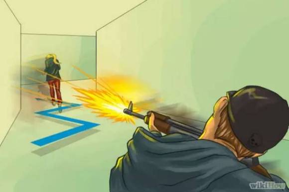 隐匿处可以帮助你躲避枪手的视线,但不会保护你免受子弹的袭击。如果这是你唯一的选择,躲在家具,壁橱,或任何其他的藏身地点。要蹲下以降低被击中的几率。大多数室内墙壁是没有阻挡子弹的功能的。