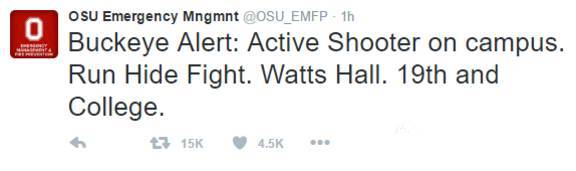 十几分钟之后,校方向全校师生发出警报,告知大家“校园内有活跃枪手,请逃离、隐蔽或抵抗(Buckeye Alert: Active Shooter on campus. Run Hide Fight.)” 并通过Twitter发布信息,指出枪击发生在位于19大道与学院路(19th Avenue and College Road)的华兹厅(Watts Hall)附近。与此同时,校警亦发出警告讯息,提示师生不要来学校或尽快离开校园,隐蔽起来的人把手机调整到震动模式。