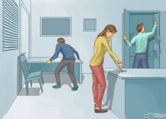 如果有其他人在房间里,引起他们的注意,并将任务进行如下分配: