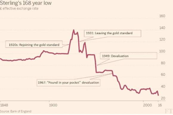 “英国的历史就是一段不断在国际上打肿了脸充胖子的历史,甚至不惜以牺牲国内经济为代价,”贡献了前面那张英镑兑美元历史汇率图的前银行家Frances Coppola在博客中写道: