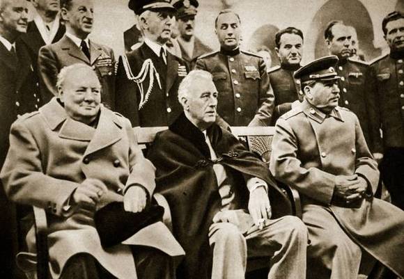 (雅尔塔会议三巨头,从左到右依次为丘吉尔、罗斯福、斯大林)