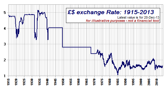 然而,1英镑兑4.03美元的汇率仍然被证明是英国政客们高估了战后经济的承受能力。1949年9月18日,英镑对美元骤贬30.5%至2.8美元。即便如此,英国还是未能改变接下来18年中,持续遭遇平衡国际收支问题和货币危机的命运:1967年11月18日英镑贬值14.3%,对美元汇率降至2.4,英镑含金量也降为2.13281克。