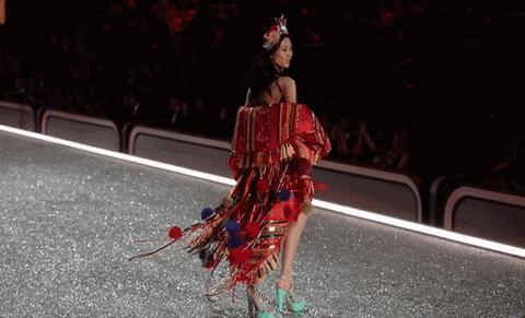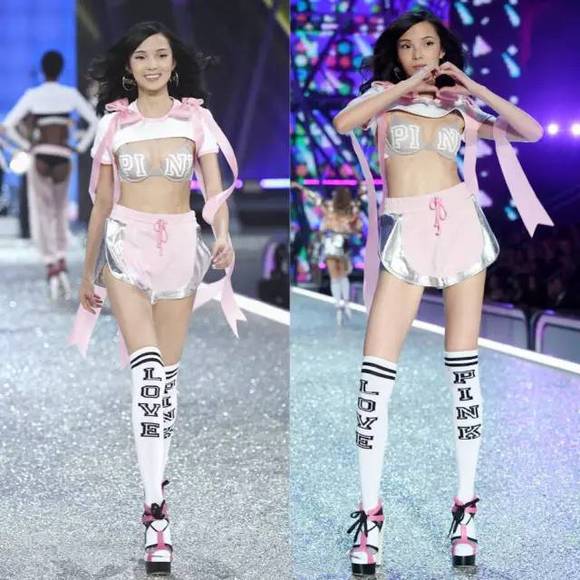 奚梦瑶前几年为维密连走三年 PINK 主题,