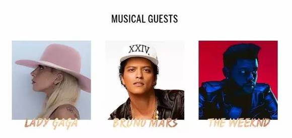 Lady Gaga、Bruno Mars与The Weeknd同台献唱,