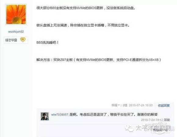 求人不如求己,倒不如自己改一个BIOS写入主板里,下面附一个教程教大家刷一个支持NVMe协议的BIOS。开刷前准备:1、最新的主板官方原版BIOS;2、EFI NVME BIOS模块;3、BIOS修改工具。