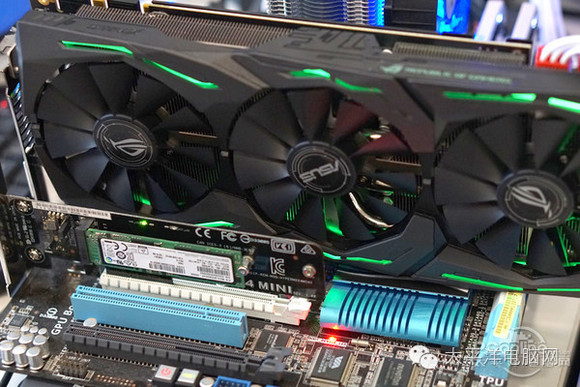 可能已经网友发现第一套测试平台是核显平台,高速SSD是插在主板第一条PCIe通道上,独享整条PCIe通道,但是更普遍的独显平台,插上显卡后一般PCIe通道会自动拆分为x8+x8,显卡和高速SSD各占一组x8通道,对于x4通道就能满足的高速SSD当然没有太大影响,但是对于显卡,x8通道而且是PCie 2.0的x8通道又是否会对目前高端显卡的性能发挥有限制?所以小编毫不犹豫再砸一张华硕 Strix GTX1080显卡到老平台上!