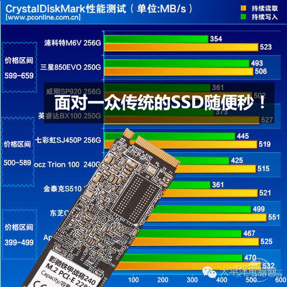 不过从今年开始,Intel 600p、三星 PM961、影驰铁甲M.2等为代表的高速SSD开始以平民价示人,同样的容量下和传统SATA接口的SSD(主流)比较,两者售价相差并不大,基本可以视为同一价格区间内。有更高速的SSD岂有不选之理?所以大家就应该有一个思维的转变,别老是只盯着那些传统SATA接口的SSD,瞧瞧隔壁那些同价位的高速(NVMe)SSD吧。
